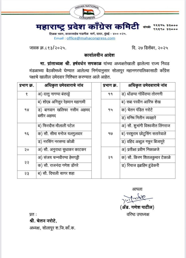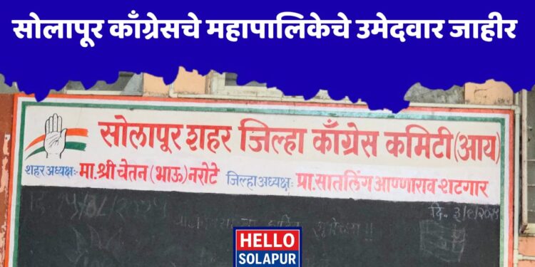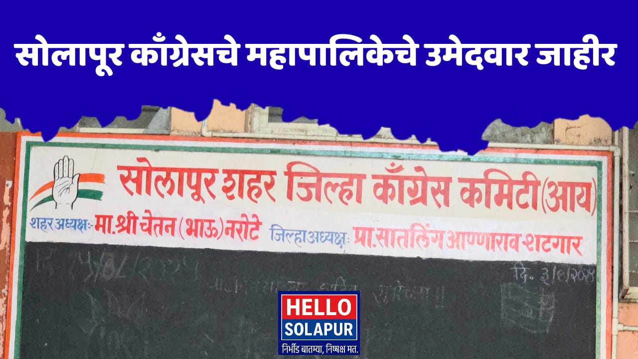 सोलापूर काँग्रेसकडून महापालिका निवडणुकीसाठी ची पहिली यादी जाहीर करण्यात आली आहे.